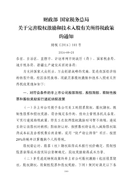 构转型升级,经国务院批准,现就完善股权激励和技术入股有关所