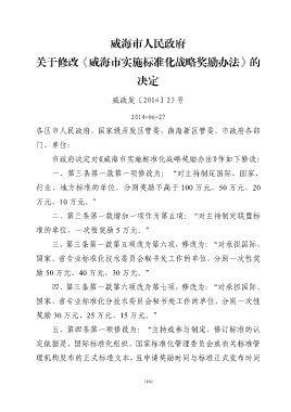 关于修改《威海市实施标准化战略奖励办法》的