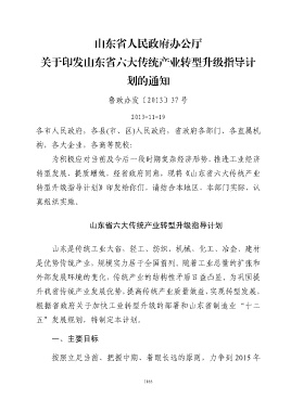 转型发展、提质增效,经省政府同意,现将《山东省六大传统产业