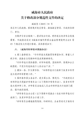 八、《威海市科学技术奖励办法》