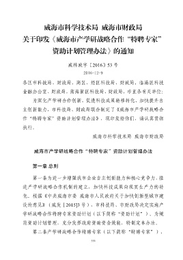 关于印发《威海市产学研战略合作“特聘专家”