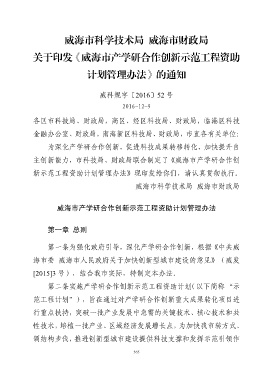 主创新能力,市科技局、财政局联合制定了《威海市产学研合作创