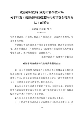 益,威海市财政局、科技局制定了《威海市科技成果转化先导资金