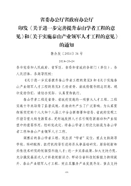 山产业领军人才工程的意见》已经省委、省政府领导同志同意,现