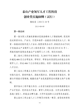 于实施泰山产业领军人才工程的意见》(鲁办发[2014]36 号),