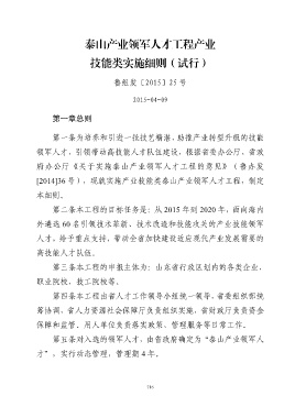 [2014]36 号),现就实施产业技能类泰山产业领军人才工程,制定