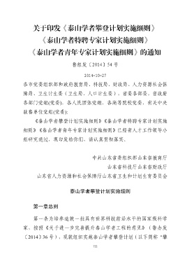 《泰山学者攀登计划实施细则》《泰山学者特聘专家计划实施