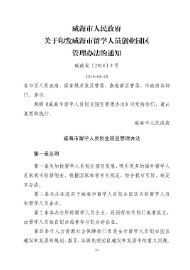 现将《威海市留学人员创业园区管理办法》印发给你们,请认