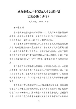 威海市重点产业紧缺人才引进计划
