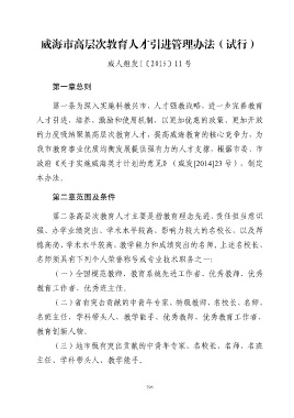 政府《关于实施威海英才计划的意见》(威发[2014]23 号),制定