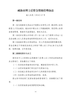 第三条威海市博士后资助资金,列入年度财政预算保障范围。