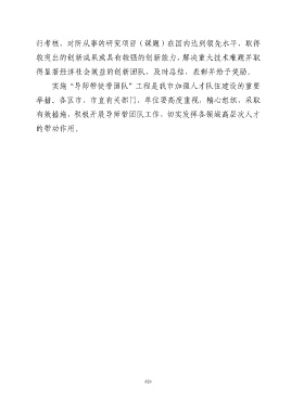 行考核,对所从事的研究项目(课题)在国内达到领先水平,取得 较突出的创新成果或具有较强的创新能力,解决重大技术难题并取 得显著经济社会效益的创新团队,及时总结、表彰并给予奖励。 实施“导师带徒带团队”工程是我市加强人才队伍建设的重要 举措。各区市、市直有关部门、单位要高度重视,精心组织,采取 有效措施,积极开展导师带团队工作,切实发挥各领域高层次人才 的带动作用。 829