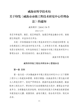 为进一步加强威海市市级工程技术研究中心的建设和管理,充