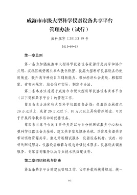 第二条本办法适用于威海市市级大型科学仪器设备共享平台
