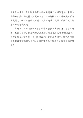 动者自主就业、自主创业和用人单位促进就业的典型事迹,引导全 社会共同关心和支持就业创业工作,引导高校毕业生等各类劳动者 转变观念,树立正确的就业观,大力营造劳动光荣、技能宝贵、创 造伟大的时代风尚。 各地区、各部门要认真落实本意见提出的各项任务,结合本地 区、本部门实际,创造性地开展工作,制定具体方案和配套政策, 同时要切实转变职能,简化办事流程,提高服务效率,确保各项就 业创业政策措施落实到位,以稳就业惠民生促进经济社会平稳健康 发展。 913