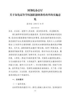 动大众创业、万众创新,经国务院同意,现就深化高校创新创业教