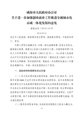 关于进一步加强创业就业工作推进全域城市化