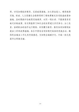 程,切实加强组织领导,完善政策措施,加大资金投入,确保取得 实效。财政、人力资源社会保障等部门要统筹制定各项配套政策和 措施,及时跟踪评估政策实施效果。对同一创业者,不能重复享受 相关补贴政策。有关职能部门和社会组织要建立共同参与、分工负 责、协调配合的协作运行机制,切实履行职责,落实各项加强创业 就业工作的政策措施。各区市要结合实际制定具体的实施办法,确 保创业就业工作扎实有效推进,为加快全域城市化、市域一体化发 展作出积极贡献。 974