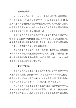 (一)支持创办科技型中小企业。鼓励科研院所、高等学校科