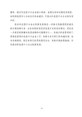 源库,健全科技型中小企业统计调查、监测分析和定期发布制度。 加快科技型中小企业信用体系建设,开展对科技型中小企业的信用 评价。 推动科技型中小企业创新发展既是一项事关创新型国家建设 的长期战略任务,也是加快转变经济发展方式的迫切需求,更是进 一步落实创新驱动发展战略的关键路径之一。各地方科技管理部门 要高度重视科技型中小企业工作,加强与有关部门的沟通协调,结 合各地情况,制定本意见的贯彻落实办法,采取有效政策措施,切 实推动科技型中小企业创新发展。 992